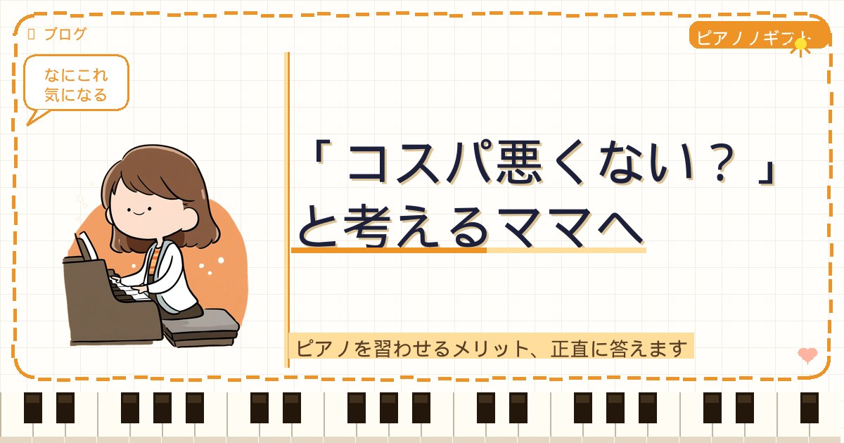 まず最初に言わせてください。「ピアノってコスパどうなんだろう」と思うこと、すごく真っ当だと思います。子育てにかかるお金は有限で、教育費は賢く使いたい——それは当たり前の感覚で、全然おかしくないです。