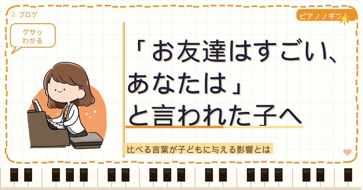 私がずっとレッスンで感じてきたことがあって。比べる言葉をよく聞かされている子は、だんだん弾く前に「これで合ってる?」と確認するようになります。間違えることへの恐怖が、音楽への好奇心より大きくなっていく。