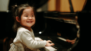 するとある日、いつも遊びの途中でチラチラと見ていた大きなグランドピアノの前に、