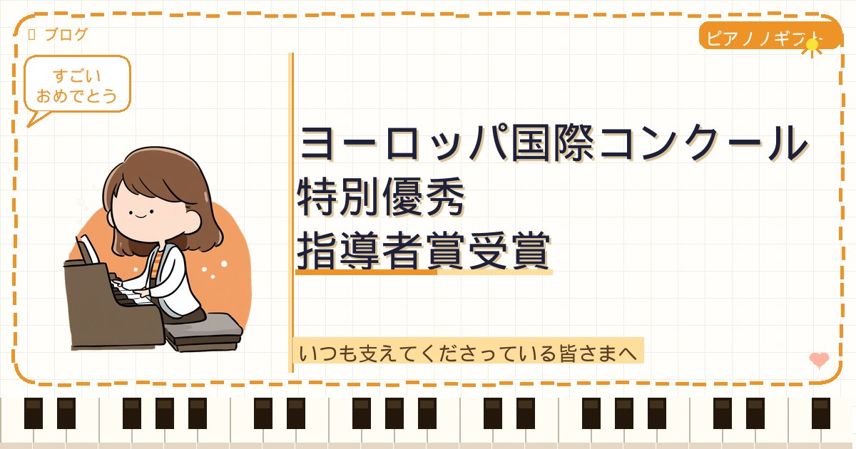 このたび、ヨーロッパ国際コンクール全国大会にて 「特別優秀指導者賞」を受賞いたしました。 日頃より支えてくださっている生徒さま、保護者の皆さまへ、 感謝の気持ちを込めてご報告いたします。
