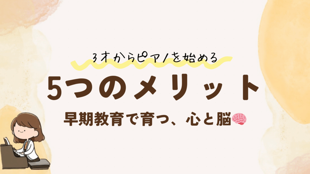 はじめに 「ピアノっていつから始めるのがいいの?」「3歳は早すぎない?」そんな疑問を持つ保護者の方は多いのではないでしょうか。 結論から言うと、3歳はピアノを始めるのに最適な年齢です。この時期は脳の発達が著しく、音感やリズム感を自然に身につけ... -